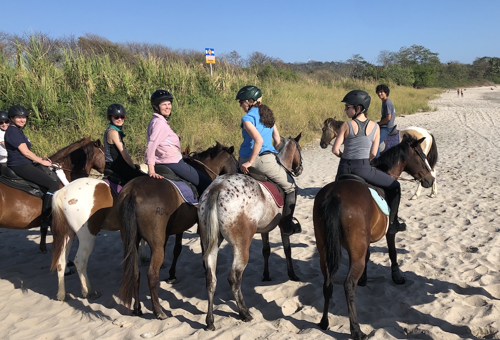 Friday: Morning: yoga, breakfast, ride in tide pools. Lunch: at tide pools. Afternoon: ride back to Playa Ponies. Evening: beach sunset walk, dinner, bonfire.